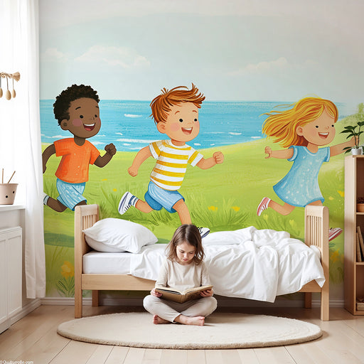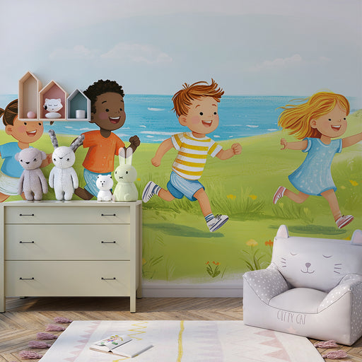 Näytä kaikki tiedotLastenhuoneen tapetti | Lapset juoksevat merenrannalla
