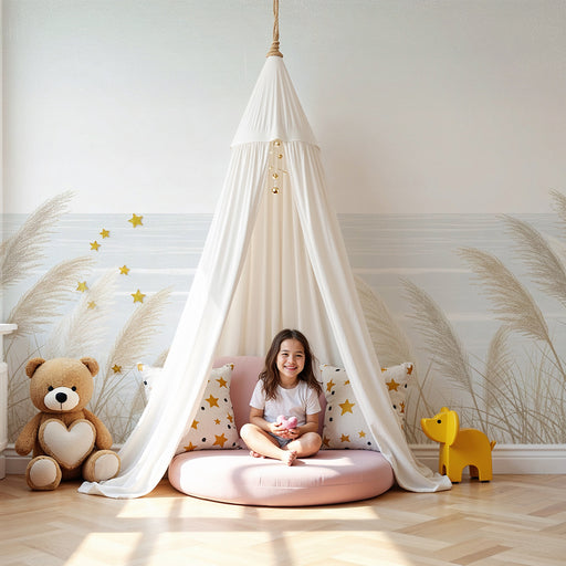 KidsWallLuo iloinen ja dynaaminen tunnelma lapsesi huoneeseen valitsemallamme lastenhuoneen rannalla leikkivällä tapetilla. Tämä lumoava suunnittelu esittä...