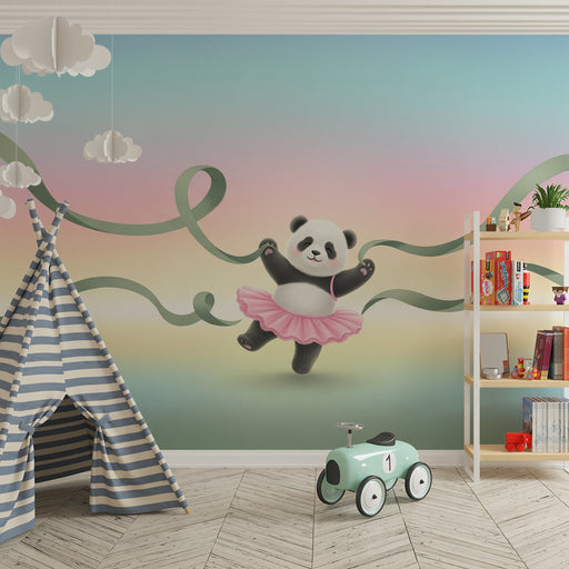 Näytä kaikki tiedotLastenhuoneen tapetti | Tanssiva panda ja värikkäät nauhat