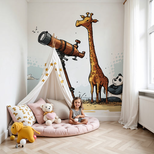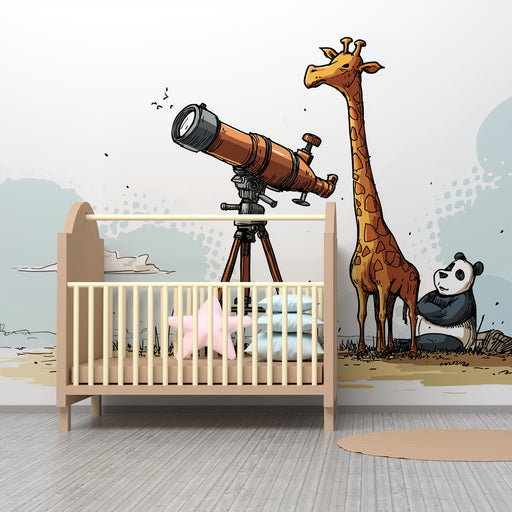 Näytä kaikki tiedotLastenhuoneen tapetti | Tutkimus kaukoputkella kirahvin ja pandan välillä