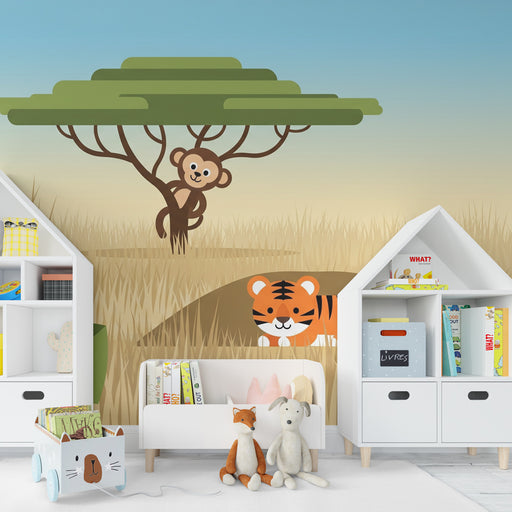 KidsWallMuuta lapsesi huone villiksi seikkailuksi tällä savannista inspiroituneella lasten tapetilla. Tämä värikäs sisustus esittelee joukon iloisia eläimi...