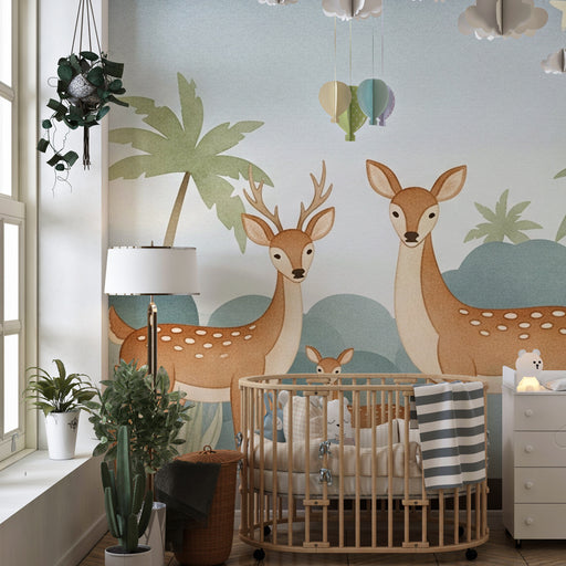 KidsWallSukella lumoavaan maailmaan tämän lastenhuoneen tapetin avulla, joka esittää lempeää yöllistä kohtausta, jossa hirviparvi seisoo rauhallisesti täht...