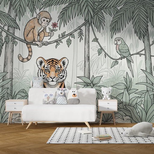 Jokainen iloinen tiikeri näyttää valmiilta lentämään taianomaiseen yöhön, herättäen lasten luovuuden. Tämä lastenhuoneen tapetti on täydellinen luomaan leikkisän ja rentouttavan ympäristön, joka kannustaa villeimpiin unelmiin.