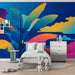 Kirkkaat sinisen, oranssin ja vaaleanpunaisen sävyt yhdistyvät luomaan iloisen ja inspiroivan ympäristön pienelle seikkailijallesi. Tämä trooppinen tapetti on täydellinen mielikuvituksen stimuloimiseen ja lämpimän ja kutsuvan ilmapiirin luomiseen.