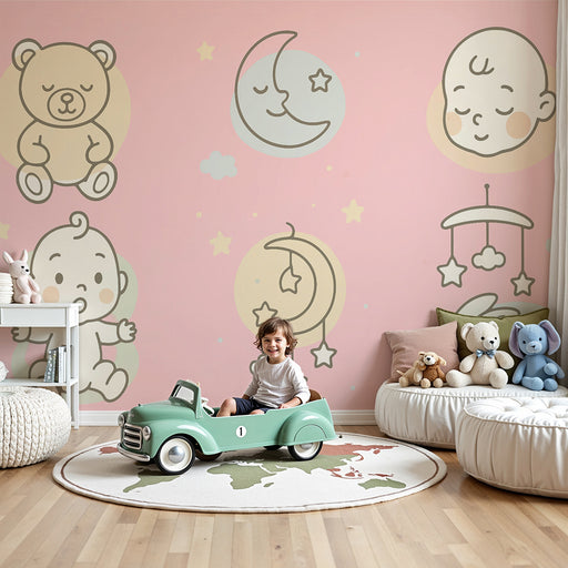 KidsWallApportez une touche de douceur et de tendresse à la chambre de votre bébé avec notre papier peint sieste mignonne. Ce design charmant présente un b...