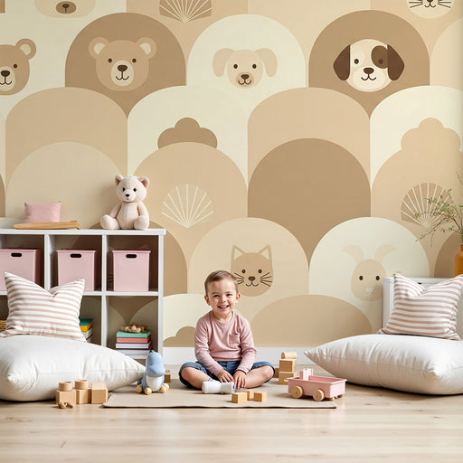 Näytä kaikki tiedotLastenhuoneen tapetti | Suloiset eläimet neutraaleissa sävyissä pehmeän tunnelman luomiseksi