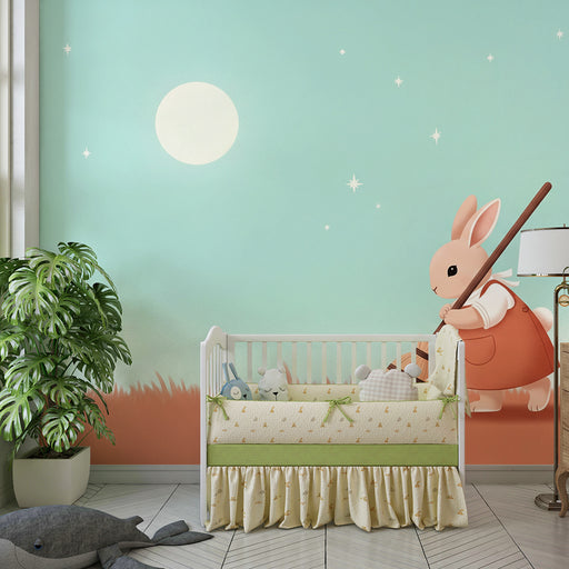 Näytä kaikki tiedotLastenhuoneen tapetti | Suloinen pupu luutii kuun alla