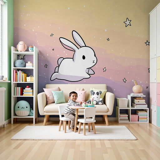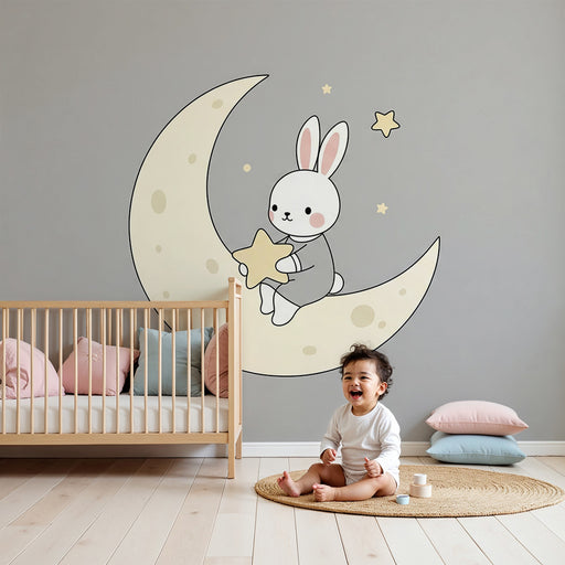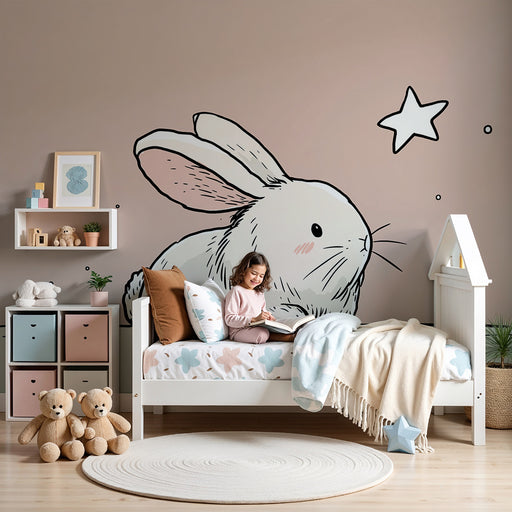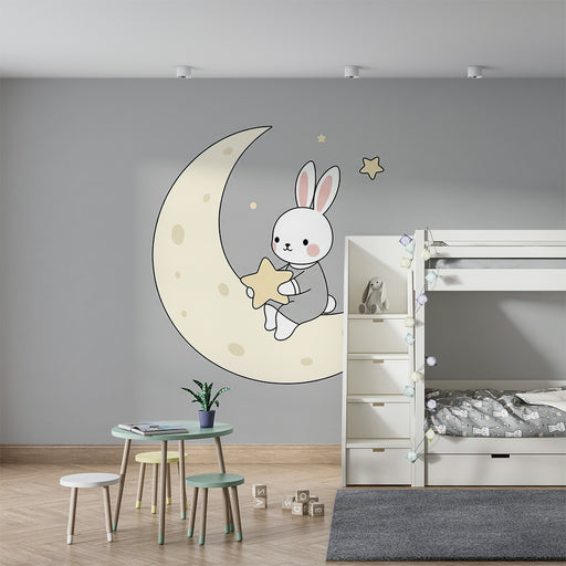 KidsWallLuo taianomainen tunnelma vauvasi huoneeseen tällä vauvan tapetilla, jossa on suloinen pupu tähystämässä putoavaa tähteä. Tämä herkkä ja unelias ku...
