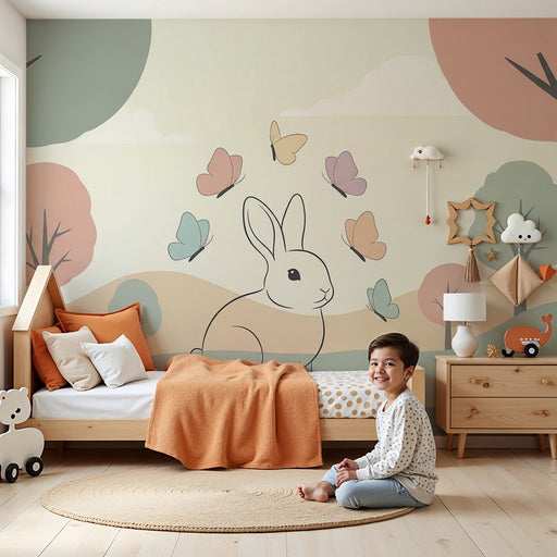 KidsWallMuuta vauvasi huone satuun tällä vauvan tapetilla, jossa on suloinen pupu ympäröity herkillä perhosilla. Rauhoittava design tuo luonnon lempeyden h...