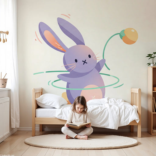 KidsWallTuo iloa ja lempeyttä vauvasi huoneeseen tällä vauvan tapetilla, jossa on suloinen violetti pupu tanssimassa. Sen veikeä hymy ja värikäs lelu herät...
