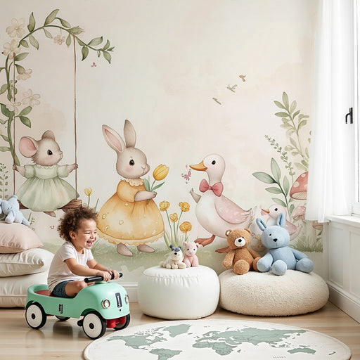 KidsWallMuuta vauvasi huone todelliseksi lumotuksi puutarhaksi tällä vauvan tapetilla. Tässä rauhallisessa ja lempeässä kohtauksessa suloisen pupun ympäril...