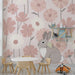 Lastenhuoneen tapetti | Söpö pupu pastelliväristen kukkien keskellä