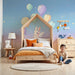 Pehmeät sinisen, vaaleanpunaisen ja violetin sävyt luovat rauhoittavan ilmapiirin, ihanteellisen unta ja unelmia varten. Kirkkaat tähdet tuovat ripauksen taikaa, tehden tästä seinämaalauksesta todellisen unelmien taulun. Jokainen yksityiskohta, pupun hymystä ilmapallojen sävyihin, on huolellisesti suunniteltu tuomaan pehmeyden ja rauhan tunnetta.