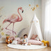 Lastenhuoneen tapetti | Flamingo ja herkät kukat pastellisessa tunnelmassa