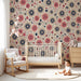 Lastenhuoneen tapetti | Retrokukat vaaleanpunaisena ja beigenä