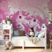 Lastenhuoneen tapetti | Vaaleanpunaiset yksisarviset ja taianomaiset kukat