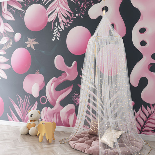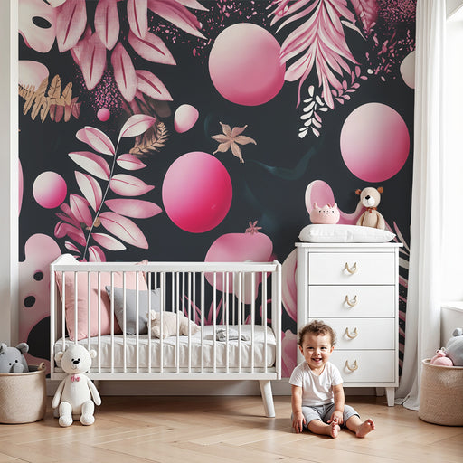 Näytä kaikki tiedotLastenhuoneen tapetti | Vaaleanpunainen lehtikuvio ja taianomaiset ympyrät