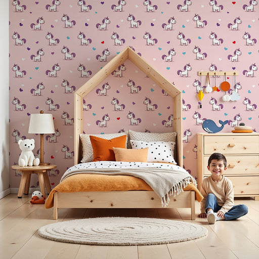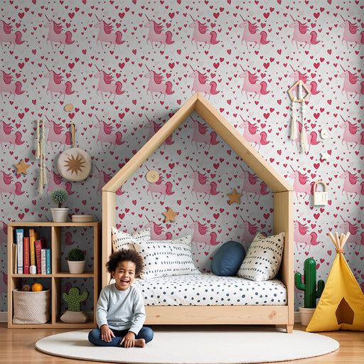 KidsWallLisää ripaus taikaa ja rakkautta lapsesi huoneeseen meidän vaaleanpunaisilla yksisarvisilla ja sydämillä koristellulla tapetilla. Tämä lumoava kuos...