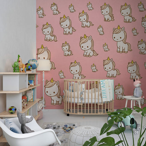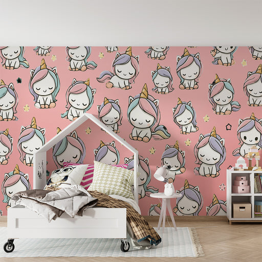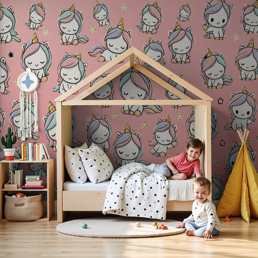 KidsWallTutustu söpöihin yksisarvisiin vaaleanpunaisella taustalla, täydellinen luomaan lumoava tunnelma lapsesi huoneeseen. Ihanat yksisarviskuviot pehmei...