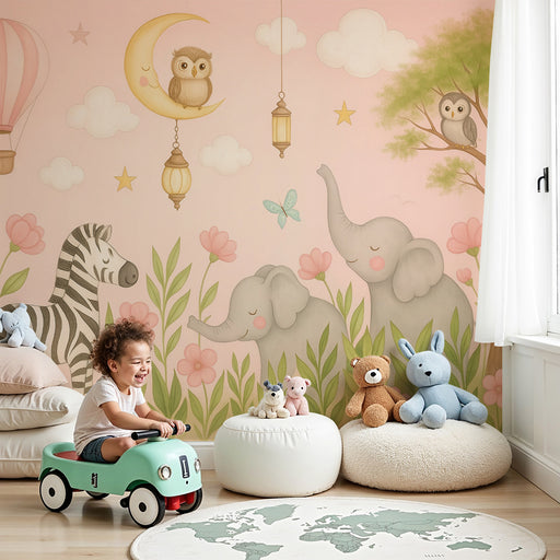 Näytä kaikki tiedotLastenhuoneen tapetti | Unelias safariseikkailu ja pastellieläimet