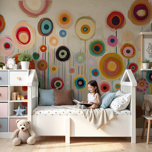 Näytä kaikki tiedotLastenhuoneen tapetti | Abstraktit värikkäät ympyrät