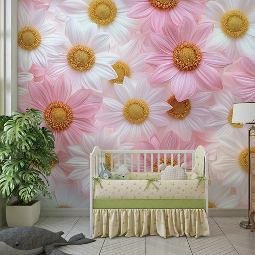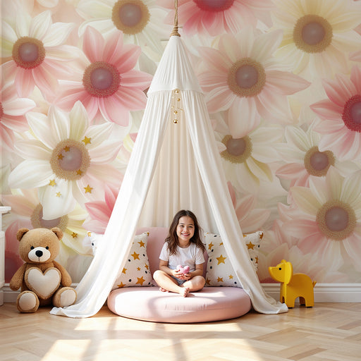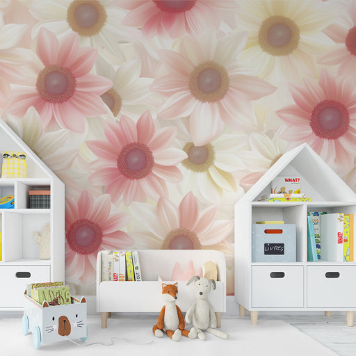 KidsWallLisää lastenhuoneeseen kukkaisia pehmeitä värejä meidän ruusuvalkoisella päivänkakkara-tapetilla. Tämä lumoava design esittelee herkkiä päivänkakka...