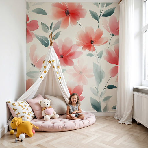 Näytä kaikki tiedotLastenhuoneen tapetti | Punaiset ja vihreät akvarellikukat