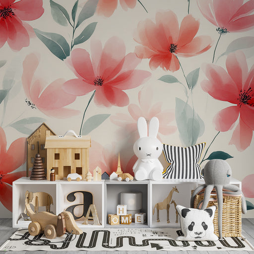 KidsWallMuuta lapsesi huone meidän vesivärimaalaus punaisilla ja vihreillä kukilla. Tämä lumoava suunnittelu esittelee upeita punaisia kukkia, jotka ovat a...