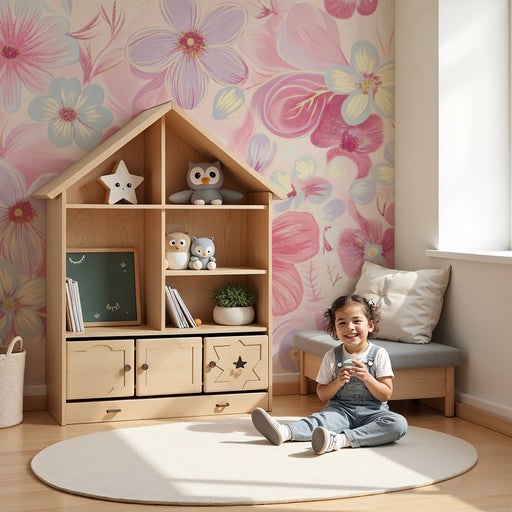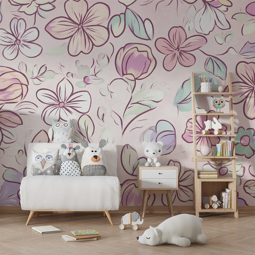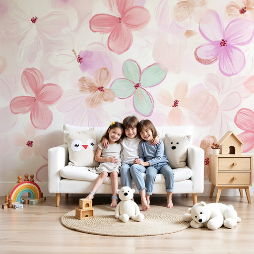 KidsWallMuuta vauvasi huone satumaiseksi puutarhaksi tällä vauvan tapetilla, jossa on herkkiä kukkia ja vaaleanpunaisia terälehtiä. Jokainen kukka, maalatt...