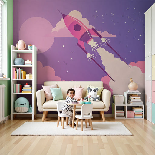 Näytä kaikki tiedotLastenhuoneen tapetti | Avaruusraketti ja vaaleanpunaiset pilvet