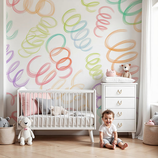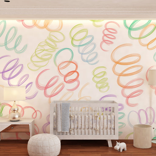 Näytä kaikki tiedotLastenhuoneen tapetti | Iloiset moniväriset spiraalit