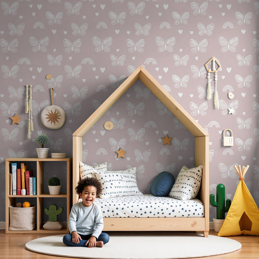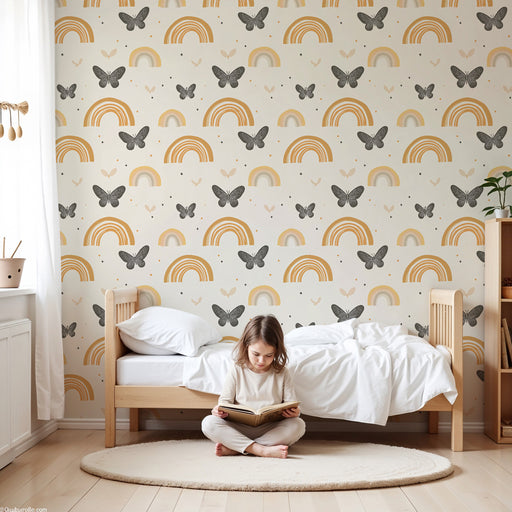 KidsWallMuuta lapsesi huone tällä pehmeällä ja leikkisällä tapetilla, joka yhdistää herkät perhoset ja inspiroivat sateenkaaret. Jokainen kuvio on taidokka...
