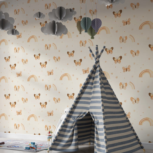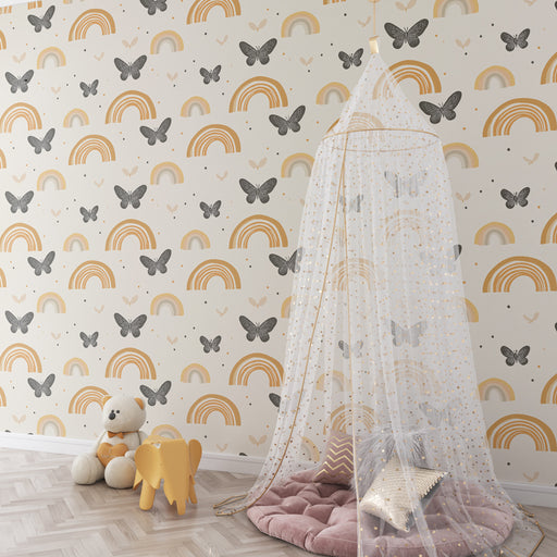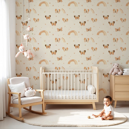 KidsWallMuuta lapsesi huone tällä iloisella tapetilla, jossa on herkkiä sateenkaaria ja leikkisiä perhosia. Lempeät ja lämpimät sävyt luovat kutsuvan tunne...