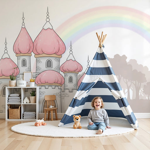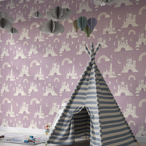 KidsWallMuuta lapsesi huone taianomaiseksi kuningaskunnaksi tällä satulinnaan inspiroituneella tapetilla. Sen vaaleanpunaiset tornit ja lumoava design kuts...