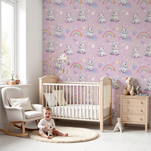KidsWallMuuta lapsesi huone taianomaiseksi tilaksi tällä lastenhuoneen tapetilla, joka on täynnä viehättäviä pupuja ja kimaltelevia sateenkaaria. Lempeät j...