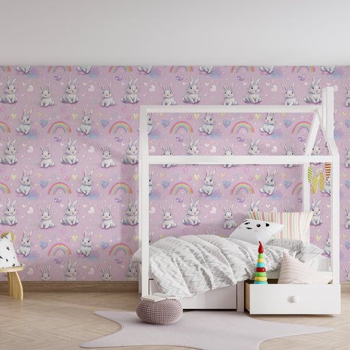 KidsWallMuuta lapsesi huone satuun tällä pehmeällä ja värikkäällä lastenhuoneen tapetilla, jossa on suloisia pupuja ympäröivät sateenkaaret ja sydämet. Täm...