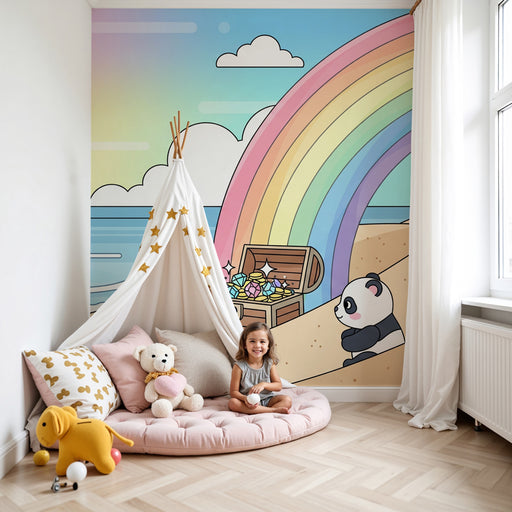 Näytä kaikki tiedotLastenhuoneen tapetti | Panda ja aarre sateenkaaren alla