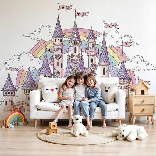 KidsWallSukella lumottuun maailmaan, jossa satumainen linna lepää pumpulipilvien päällä, ja jota hallitsee taianomainen sateenkaari. Tämä lastenhuoneen tap...