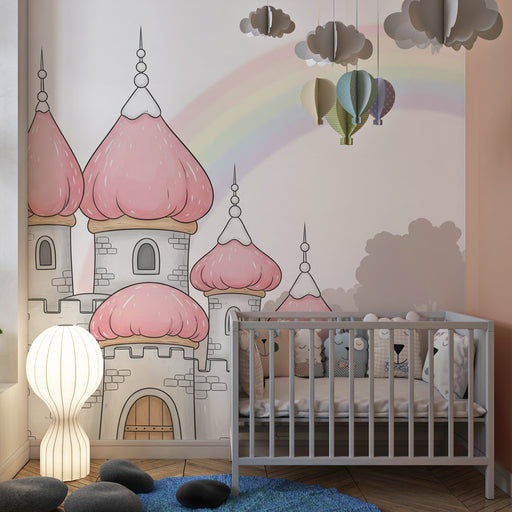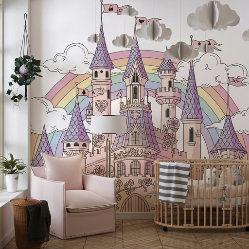 Näytä kaikki tiedotLastenhuoneen tapetti | Lumottu linna sateenkaaren alla