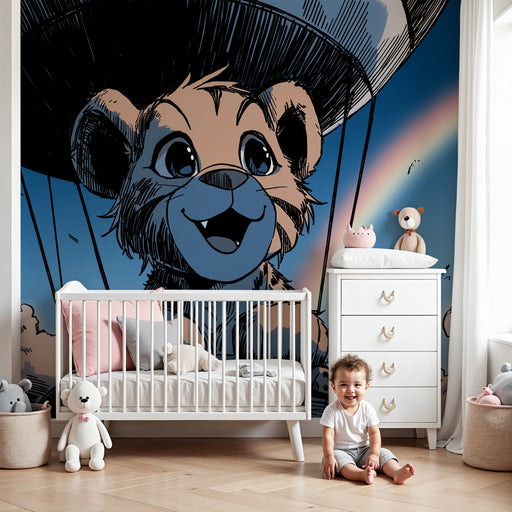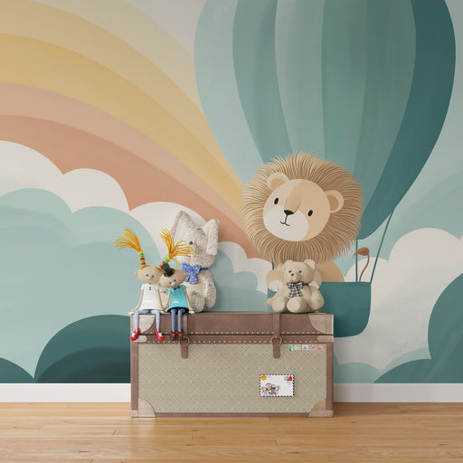 Näytä kaikki tiedotLastenhuoneen tapetti | Leijona ilmapallolla ja sateenkaarella