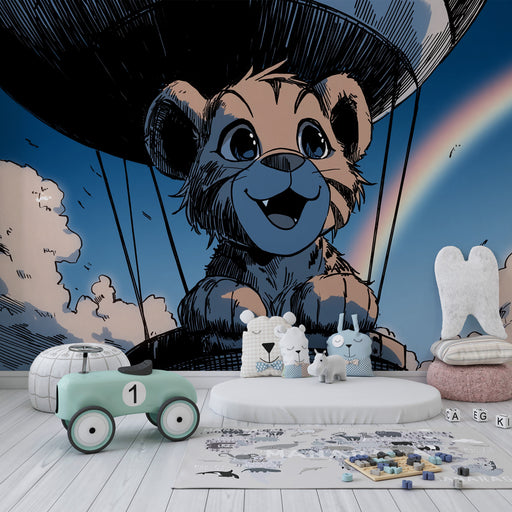 Näytä kaikki tiedotLastenhuoneen tapetti | Pieni leijona ilmapallossa sateenkaaren alla