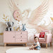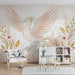 Lastenhuoneen tapetti | Myyttinen lintu ja herkät kukat pehmeissä sävyissä