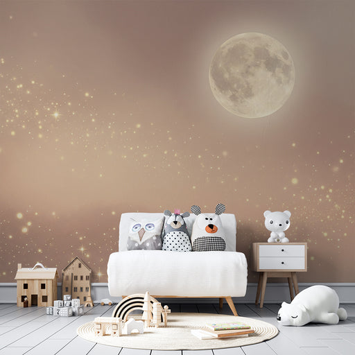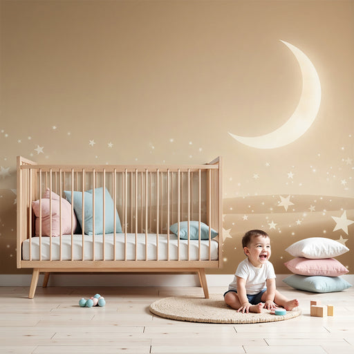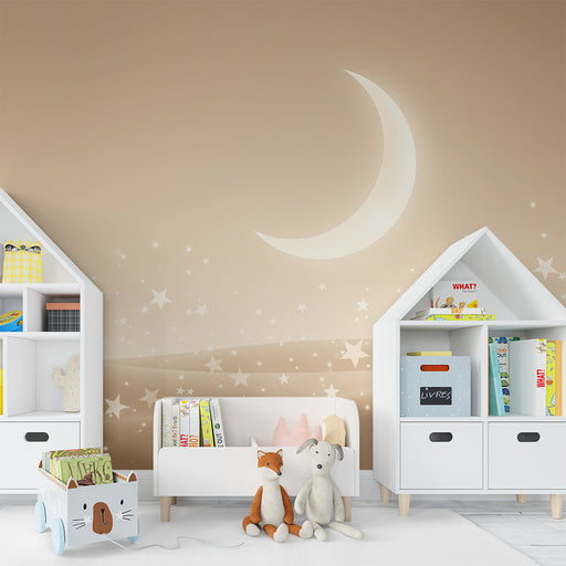 Näytä kaikki tiedotLastenhuoneen tapetti | Tähtiyö ja lempeä kuu vaaleanbeigellä taustalla