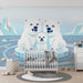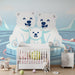 Découvrez notre papier peint chambre bébé avec une adorable famille d'ours polaires. Idéal pour créer une atmosphère douce et amusante dans la chambre de votre petit, ce design représente une famille d'ours souriant, assis sur un bloc de glace, entouré d'un paysage polaire serein.