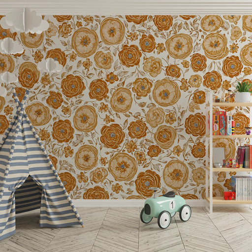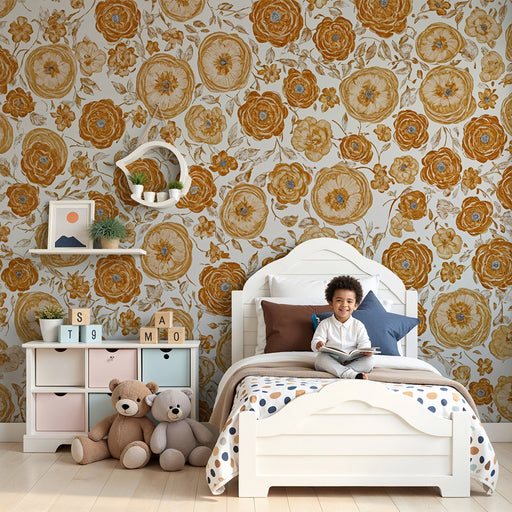 KidsWallTämä vintage-kukkatapetti lämpimissä sävyissä on täydellinen valinta pehmeän ja retrohenkisen vauvan huoneeseen. Ruskean ja oranssin sävyiset kukka...
