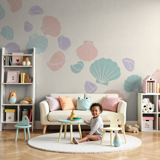 KidsWallMuuta vauvasi huone rauhoittavaksi tilaksi tällä kauniilla lastenhuoneen tapetilla, jossa on upeita simpukkakuvioita. Hienostuneet ja tyylikkäät ku...