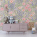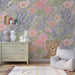Muuta vauvasi huone kodikkaaksi tilaksi tällä lastenhuoneen tapetilla, jossa on värikkäitä kukkia ja suloinen pehmolelu. Vaaleanpunaiset ruusun terälehdet ja liilat kukat sulautuvat harmonisesti luoden pehmeän ja rauhoittavan tunnelman, joka edistää rauhallisuutta ja lepoa.