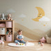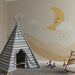 Lastenhuoneen tapetti | Tähtitaivas hymyilevällä kuulla ja beigeillä vuorilla