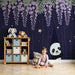 Koristele vauvasi huone tällä lumoavalla lastenhuoneen tapetilla. Suloisen pandan lepää rauhallisesti tähtitaivaan alla, ympäröitynä kauniista violetinsävyisistä sinisistä kukista. Tämä satumainen sisustus kutsuu unelmoimaan ja lempeyteen.