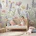 Muuta vauvasi huone satumaiseksi puutarhaksi tällä kauniisti kuvitetulla vauvan tapetilla. Värikkään niityn keskellä suloinen pieni karhu lepää herkkien kukkien, kuten laventelien, päivänkakkarien ja kosmosten keskellä. Tämä rauhoittava sisustus kutsuu unelmoimaan ja hellyyteen.
